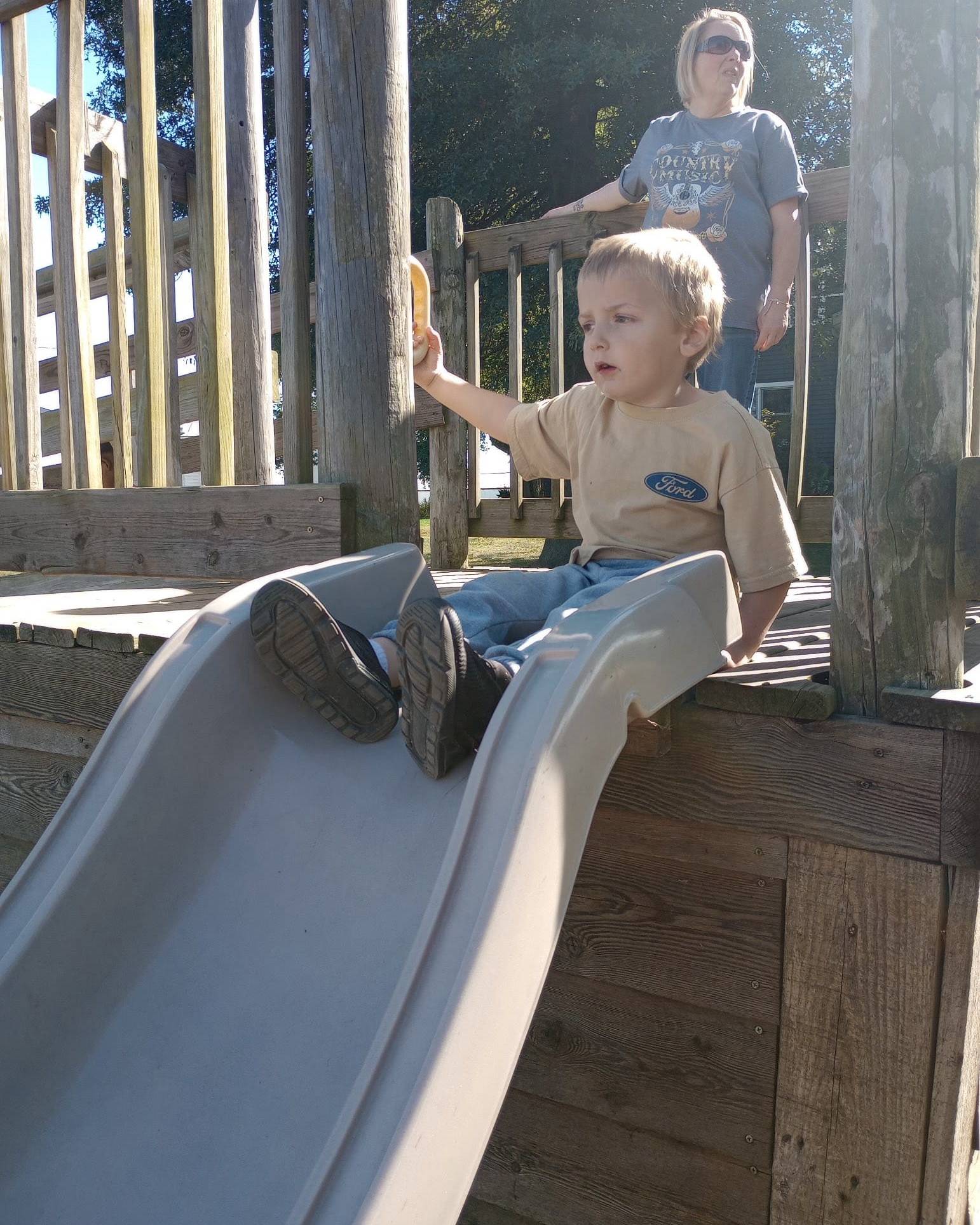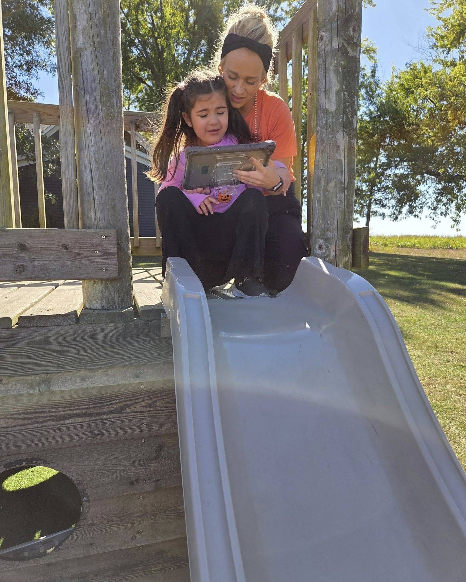We had a lot of fun, but during that fun time we worked on how to be out in the community by waiting our turn, taking turns, and following directions. Miss Chandler (our SLP) worked on the iPad by using the TouchChat app to help the students communicate what they were doing, using words such as “slide, go, down, pumpkin, orange”. Some students even used it asking for their snack.